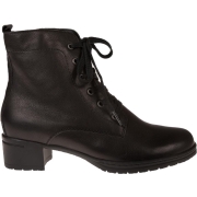 Zwarte enkellaars op een hakje met een veter en een rits. Voorzien van een uitneembaar voetbed,…