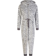 De grijze onesie van By Louise met panterprint is de ultieme loungewear voor knusse dagen thuis. Deze zachte fleece overall met capuchon en taillekoord biedt warmte, comfort en een trendy uitstraling…