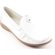 Sportieve instapper van Gabor in wit met zilver calfsleer. Art: 86.090.50 heeft soepele honing kleurige rubberzool. Op deze moccasain is hielstuk en boordband uitgevoerd in het zilver…