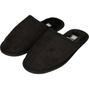 Zwarte instap sloffen/pantoffels met bont voor dames. Zwarte instap slofjes/pantoffeltjes met suede-look stof op de neus, pluche/nepbonten voetbed en een anti-slip zool. Materiaal: polyester…