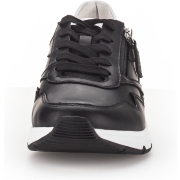 Gabor sneaker art 76.307 67 met veter en 2 ritssluitingen, zwart met grijze zool. Op een K leest geshikt voor de volle tot hele volle voet. Het voetbed is uitneembaar, het voorblad is van stretchleer…