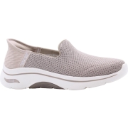 Taupe vegan damesschoen van het merk Skechers. Met archfitzool en met slipin systeem in de hiel. Art 125315TPE…