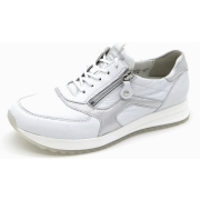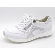 Waldlaufer sneaer voor dames, artikel in het wit leer. Beschikbaar met uitneembaar voetbed. De pasvorm valt breed door de H wijdte.…