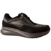 Waldlaufer sneaker voor dames, artikel Vicky in het zwart leer. De sneaker beschikt over een uitneembaar voetbed. De pasvorm valt breder door de H wijdte…