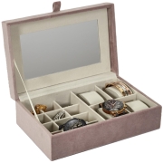 Home Deco Factory Horlogebox - roze - 13 vakjes - 25 x 8 x 16 cm - organizer - sieradendoos -