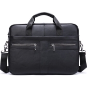 Laptoptas 15 6 inch Schoudertas Aktetas Leren Tas Leder Zwart - Urban U®