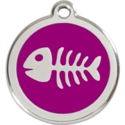 Fish Skeleton Purple roestvrijstalen hondenpenning small/klein dia. 2 cm - Reddingo