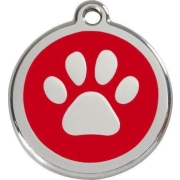 Paw Print Red roestvrijstalen hondenpenning large/groot dia. 3,8 cm - Reddingo