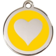 Heart Yellow roestvrijstalen hondenpenning small/klein dia. 2 cm - Reddingo