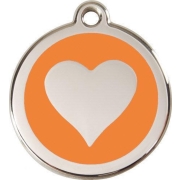 Heart Orange roestvrijstalen hondenpenning small/klein dia. 2 cm - Reddingo