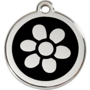 Flower Black roestvrijstalen hondenpenning large/groot dia. 3,8 cm - Reddingo