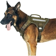 Hondentuigje, Fire Tanker, tactisch hondenharnas, 3 handgrepen, heavy duty, met metalen gespen en reflecterende strepen