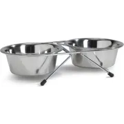 RVS Voerbak standaard Met 2 eet of drinkbakjes - Glanzend.