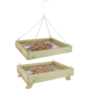 2x stuks vogelvoedertafel hout staand en hangend 35 cm. Deze vogelvoedertafel is voorzien van poten waardoor u deze op de grond kan plaatsen, Daarnaast kunt u de voedertafel ook in de boom of aan…
