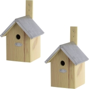 2x Houten vogelhuisjes/nestkastjes pimpelmees 32 cm met schuine zinken dak. Dit vogelhuisje is ook geschikt voor andere vogeltjes, zoals de kuifmees, matkop, glanskop, koolmees en de zwarte mees.…