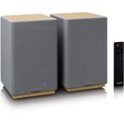 LENCO SPB-241WDGY - Set van 2 HiFi stereo Bluetooth® speakers - Krachtig geluid in een stijlvol design - Hout/Grijs
