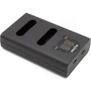 Kleine en platte oplader voor het opladen van 3 accu's NP-FW50. Per stuk of allemaal tegelijk. Aan te sluiten op een powerbank, autolader, USB poort of lichtnet. Voorzien van LCD die per accu de…