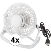 4x Mini ventilator met USB aansluiting. Kunststof bureau ventilator inclusief USB kabel (ca. 93 cm) in de kleur wit. Op de achterzijde bevindt zich een aan en uit knop. Geeft u verkoeling wanneer…