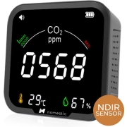 Nomestic® Airsight CO2 Meter & Hygrometer voor Binnen – CO2 Melder met Thermometer & Luchtvochtigheidsmeter – Luchtkwaliteitsmeter – Draagbaar en Oplaadbaar – Zelfkalibrerende NDIR sensor