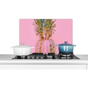 Spatscherm Keuken - Kookplaat Achterwand - Spatwand Fornuis - 60x40 cm - Verf - Ananas - Roze - Zomer - Aluminium - Wanddecoratie - Muurbeschermer - Hittebestendig