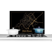 Spatscherm Keuken - Kookplaat Achterwand - Spatwand Fornuis - 90x60 cm - Stadskaart - Den Haag - Goud - Zwart - Aluminium - Wanddecoratie - Muurbeschermer - Hittebestendig