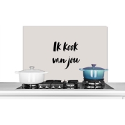Spatscherm Keuken - Kookplaat Achterwand - Spatwand Fornuis - 90x60 cm - Ik kook van jou - Quote - Taupe - Aluminium - Wanddecoratie - Muurbeschermer - Hittebestendig
