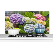 Spatscherm Keuken - Kookplaat Achterwand - Spatwand Fornuis - 120x60 cm - Verschillende hortensia bloemen - Aluminium - Wanddecoratie - Muurbeschermer - Hittebestendig