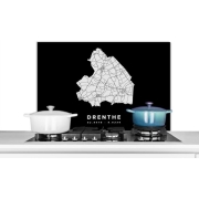 Spatscherm Keuken - Kookplaat Achterwand - Spatwand Fornuis - 90x60 cm - Drenthe - Wegenkaart Nederland - Zwart - Aluminium - Wanddecoratie - Muurbeschermer - Hittebestendig