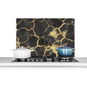 Spatscherm Keuken - Kookplaat Achterwand - Spatwand Fornuis - 90x60 cm - Marmer - Goud - Zwart - Aluminium - Wanddecoratie - Muurbeschermer - Hittebestendig