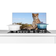KitchenYeah - Spatscherm - Spatscherm keuken - Cheetah - Dieren - Boomstam - Natuur - Achterwand keuken - Keuken decoratie - Spatscherm dieren - 70x30 cm - Spatwand - Muurbeschermer