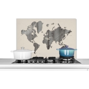 Spatscherm Keuken - Kookplaat Achterwand - Spatwand Fornuis - 80x55 cm - Wereldkaart - Beige - Zwart - Wit - Aluminium - Wanddecoratie - Muurbeschermer - Hittebestendig