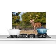 Spatscherm - Hert - Natuur - Heide - Dieren - Landschap - Spatwand - 60x40 cm - Spatscherm hert - Muurbeschermer - Keuken decoratie - Achterwand keuken