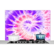 Spatscherm Keuken - Kookplaat Achterwand - Spatwand Fornuis - 120x80 cm - Zomer - Tie dye - Paars - Aluminium - Wanddecoratie - Muurbeschermer - Hittebestendig