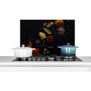 Spatscherm keuken 60x40 cm - Kookplaat achterwand Kruiden - Zwart - Specerijen - Keuken - Koken - Muurbeschermer hittebestendig - Spatwand fornuis - Hoogwaardig aluminium