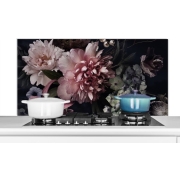 Spatscherm Keuken - Kookplaat Achterwand - Spatwand Fornuis - 120x60 cm - Bloemen - Vintage - Pastel - Roze - Wit - Aluminium - Wanddecoratie - Muurbeschermer - Hittebestendig