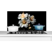 Keukenaccessoires - Bloemen - Wit - Hibiscus - Natuur - Zwart - Achterwand keuken Keuken spatschermen van KitchenYeah beschermen jouw kookplaat achterwand tegen spetters en etensresten.…