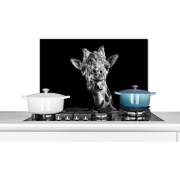 Keukenaccessoires - Giraffe tegen zwarte achtergrond in zwart-wit - Achterwand keuken Keuken spatschermen van KitchenYeah beschermen jouw kookplaat achterwand tegen spetters en…