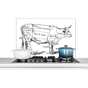 Spatscherm Keuken - Kookplaat Achterwand - Spatwand Fornuis - 90x60 cm - Antieke illustratie met het slagersdiagram van een rund - Aluminium - Wanddecoratie - Muurbeschermer - Hittebestendig