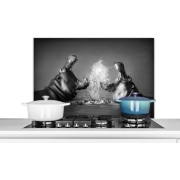 Keukenaccessoires - Dieren - Nijlpaard - Water - Zwart - Wit - Achterwand keuken Keuken spatschermen van KitchenYeah beschermen jouw kookplaat achterwand tegen spetters en etensresten.…