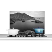 Spatscherm Keuken - Kookplaat Achterwand - Spatwand Fornuis - 90x60 cm - Scandinavische kust zwart-wit fotoprint - Aluminium - Wanddecoratie - Muurbeschermer - Hittebestendig