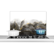 Spatscherm Keuken - Kookplaat Achterwand - Spatwand Fornuis - 90x60 cm - Luxe - Goud - Zwart - Aluminium - Wanddecoratie - Muurbeschermer - Hittebestendig
