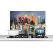Keukenaccessoires - Schilderij - Olieverf - Skyline - Water - Achterwand keuken Keuken spatschermen van KitchenYeah beschermen jouw kookplaat achterwand tegen spetters en etensresten. De…