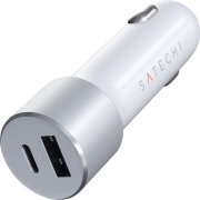Satechi 72W Type-C PD Car Charger zilver Met behulp van de nieuwste Power Delivery-technologie levert de autolader tot 60 Watt via de USB-C-poort en 12 Watt via de USB-A poort. Het ultracompacte…
