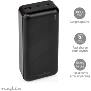 Nedis UPBKPD30000BK Powerbank 30000 Mah 1.5 / 2.0 / 3.0 A Outputs: 2 Output: 1x Usb-a / 1x Usb-c™ Inputs: 1x Micro Usb / 1x Usb-c™ Pd3.0 20w Lithium-polymeer