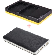 Powerpakket Deluxe: NP-FP50 duo oplader + 5000mAh Powerbank voor 2 Sony accu's NP-FP50 / NP-FP70