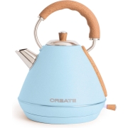 CREATE KETEL RETRO L - Waterkoker 1.7L - Roestvrij staal - Pastelblauw & natuurlijk hout
