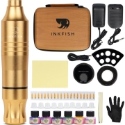 Inkfish Tattoo Machine - Set - Pen - Inkt - 20 Naalden - Voor Beginner & Gevorderde - Kit - Gun - Zwart - PMU