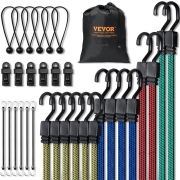 VEVOR 30-delige bungee-koordenset, 8 mm zware bungee-riemen met A3-stalen karabijnhaken, inclusief 10", 18", 24", 36", 48", 60", 72", draagbare opbergtas, 6 clips en luifelriemen