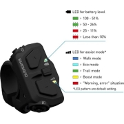 SHIMANO STEPS Schakeleenheid (links) voor ondersteuning. Intuïtieve ondersteuningsschakelaar met geïntegreerde aan- en /uitknop werkt goed met elk type e-bike Bedien je SHIMANO STEPS fietscomputer…
