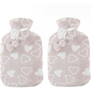 Warmwaterkruiken 2 liter met zachte fleece hoes beige/hartjes 2x stuks -